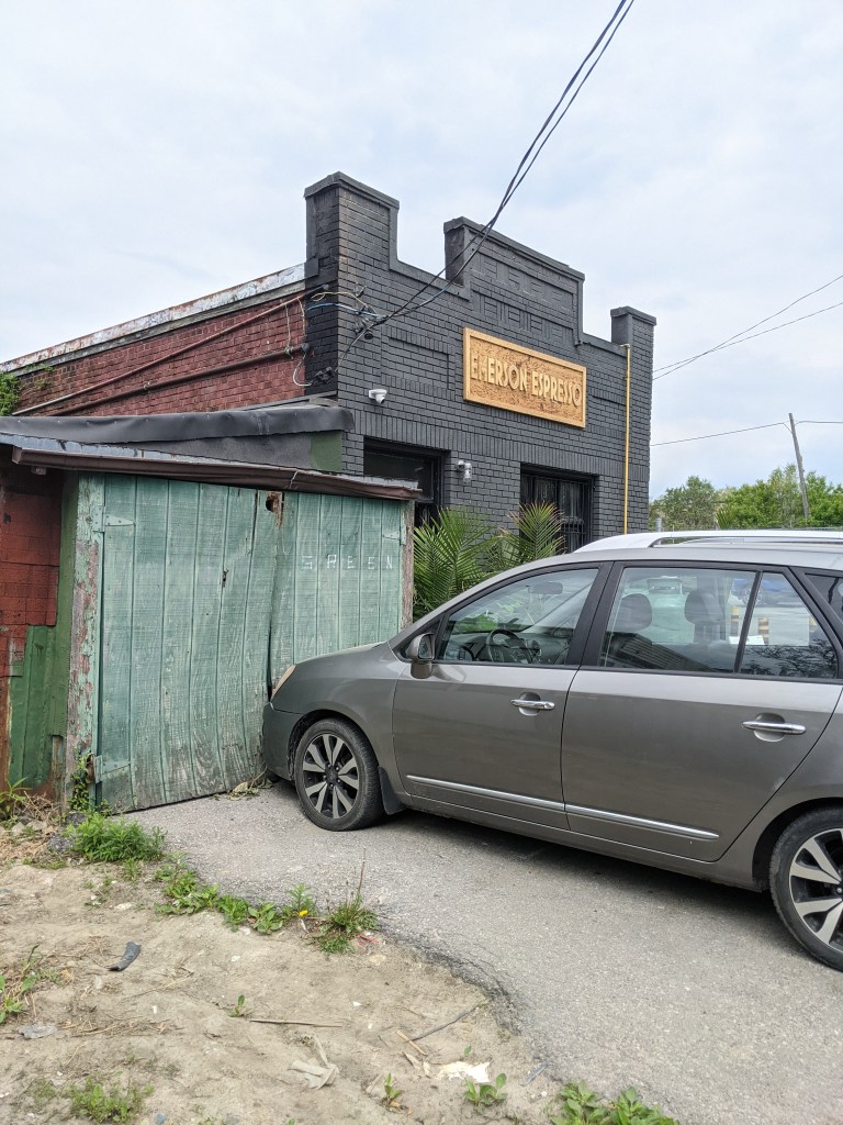 First of all it is hidden in plain sight in an obscure place near a gas station and nearly derelict garages. My kind of thing. There is something magical about an oasis of class and beauty in the midst of poetic decay.
